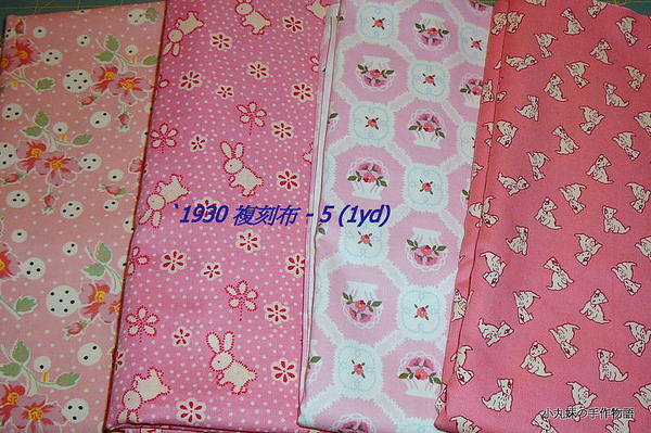 第五張照片裡的布料是粉紅色和桃紅色系列的復刻布